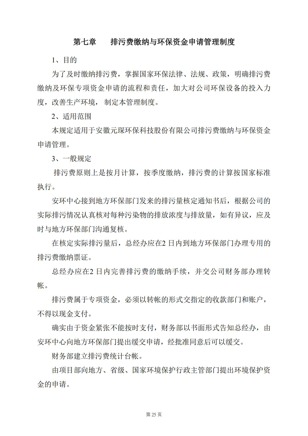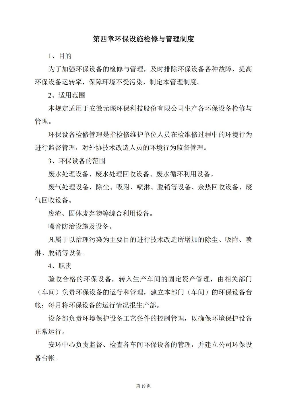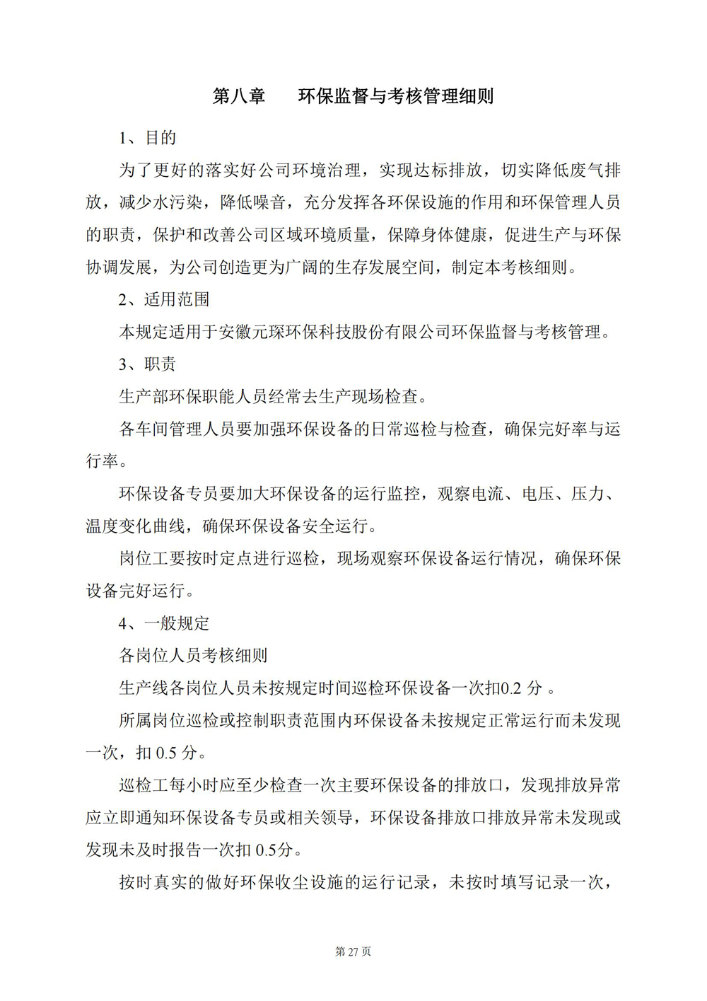 安徽元琛環保科技股份有限公司環保管理制度匯編