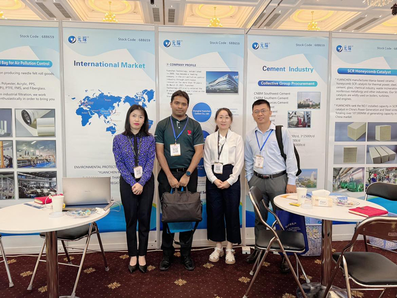 元琛科技作為一家環??萍脊荆诒敬握箷险钩隽斯靖咝С龎m過濾材料與SCR脫硝催化劑產品及高端裝備、AI能碳管理系統等。這些產品和技術吸引了眾多客戶駐足參觀,并與公司技術專家進行了深入的交流與探討。許多客戶對元琛科技的產品和技術給予了高度評價,表示愿意與公司開展深入的合作。