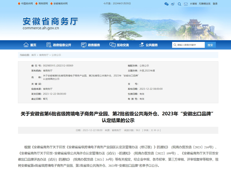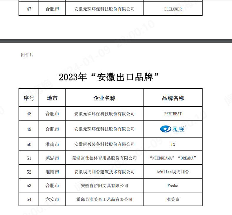 近日,安徽省商務廳公布2023年“安徽出口品牌”認定名單, 此次評選全省共44家企業(yè),54個品牌獲得認定,元琛科技“