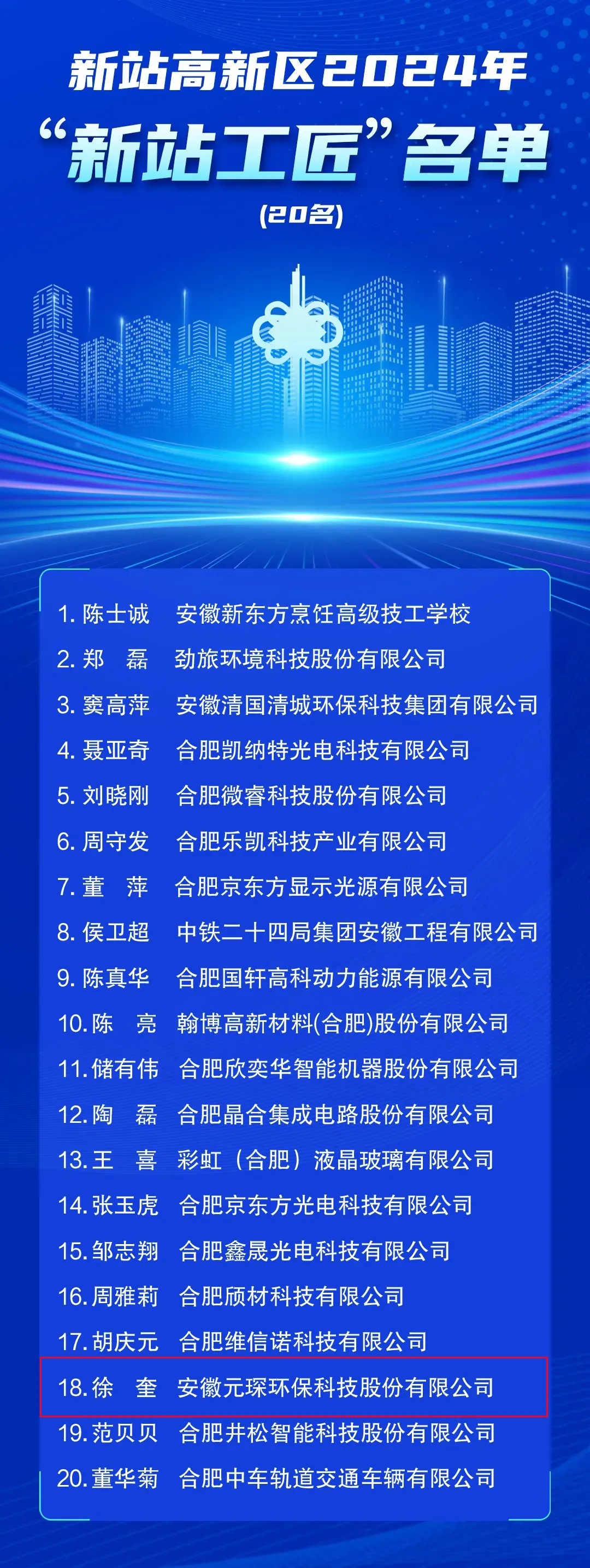 安徽元琛環保科技股份有限公司徐奎成功上榜!