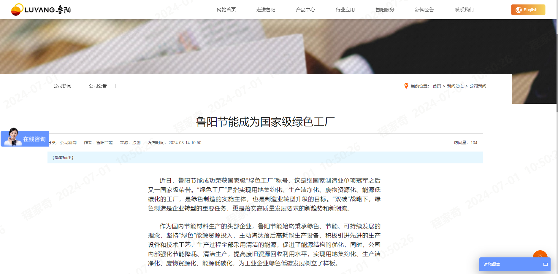 魯陽(yáng)節(jié)能成為國(guó)家級(jí)綠色工廠