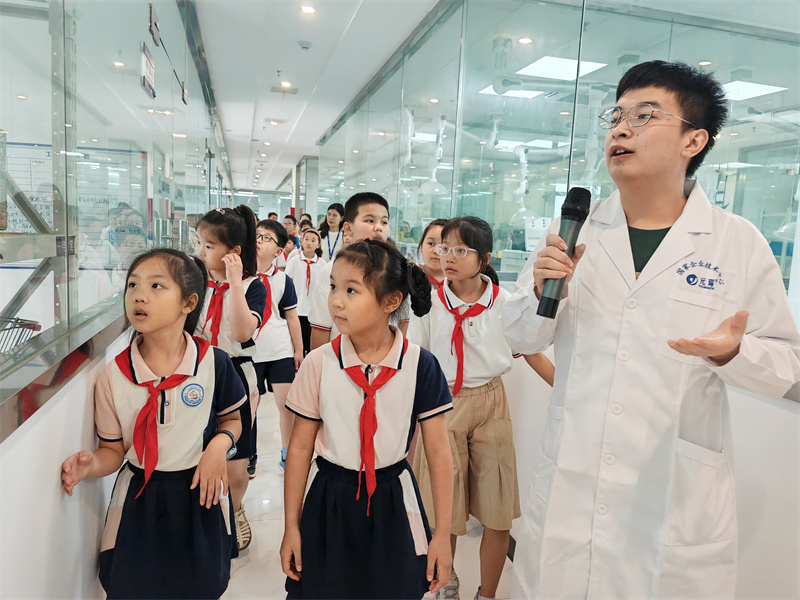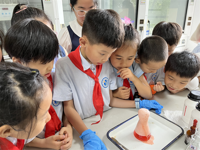 隨后,大家一同來到元琛科技的實驗中心,在這里化身小小科學家,學習化學知識,親手操作實驗,感受科學的魅力。實驗過程中,小朋友們現場開啟“十萬個為什么”模式,與元琛科技科研人員頻繁互動,積極提問。每一次成功的實驗都伴隨著孩子們的掌聲與歡呼,他們在歡笑中領略了科學的樂趣,也在掌聲中思考著科學的力量。